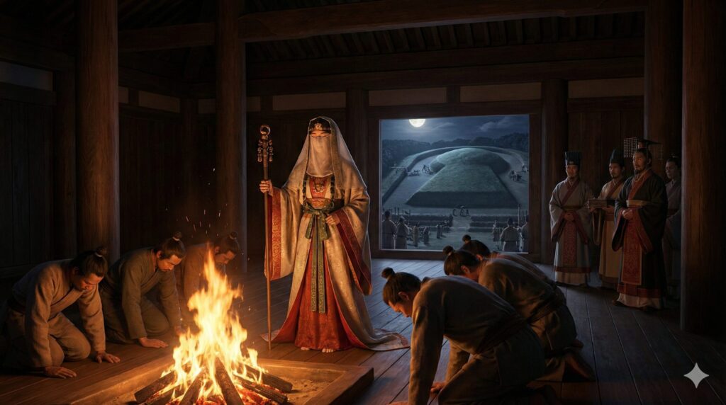 『魏志倭人伝』には、卑弥呼について「鬼道を事とし、能く衆を惑わす」という非常にミステリアスな記述があり、これは彼女が【シャーマニズム】、つまり呪術的な力を用いて神の言葉を人々に伝える宗教的なカリスマであったことを示しており、当時の人々にとって神の意思は絶対であり、天候や疫病、戦争の吉凶を占う彼女の言葉こそが法そのものでした。