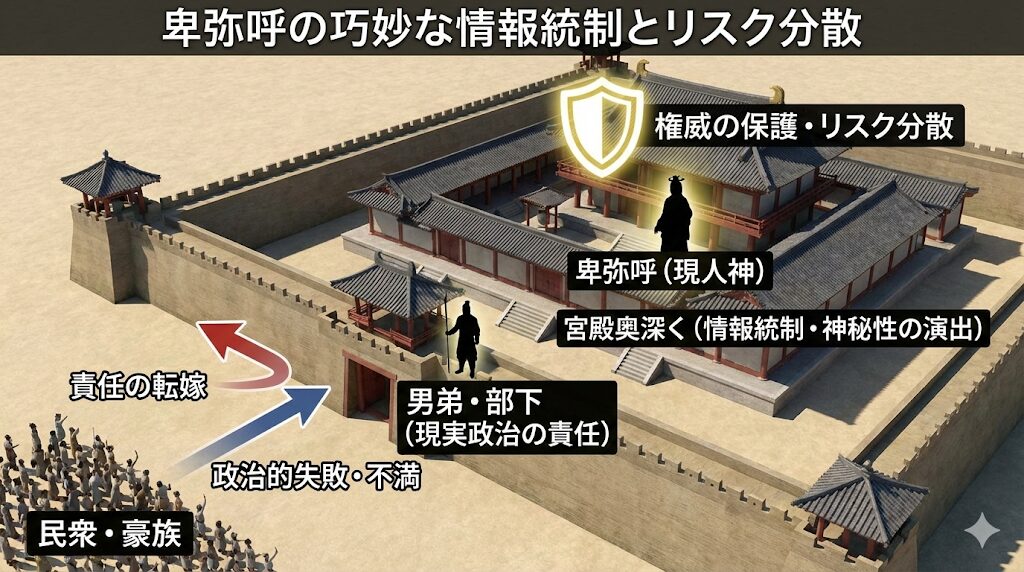 この権力構造の巧妙な点は、政治的な失敗や不満が直接女王に向かないようにする【リスク分散】の効果も果たしていたことであり、もし政策が失敗しても、それは弟や部下の責任にできても、神の声である卑弥呼の権威自体は傷つかないという、支配を長期化させるための知恵が詰まっていました。